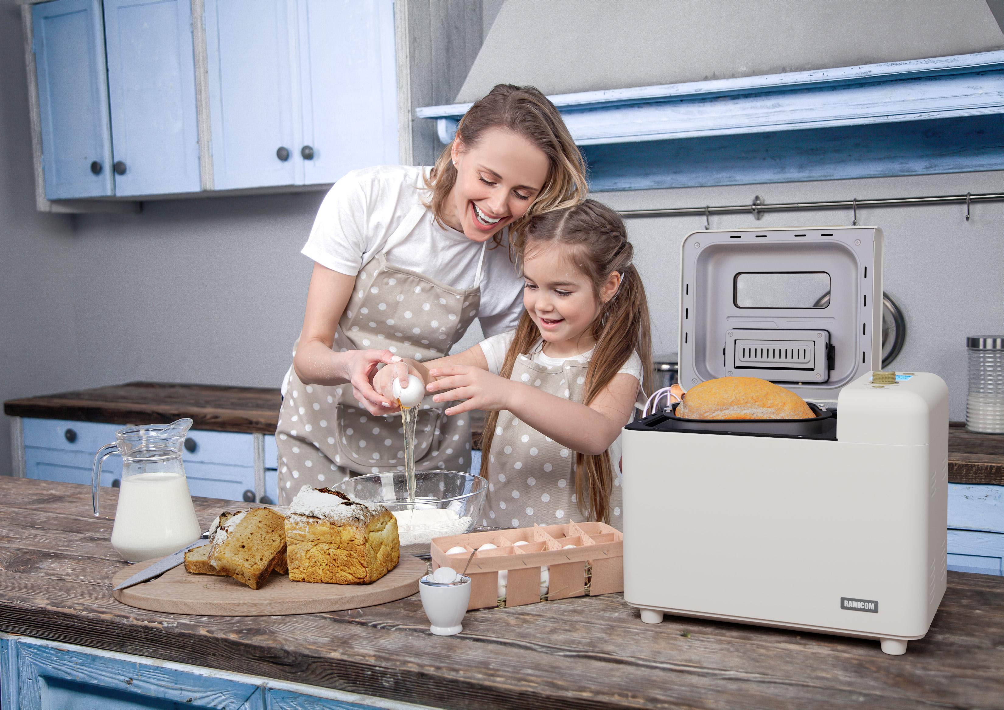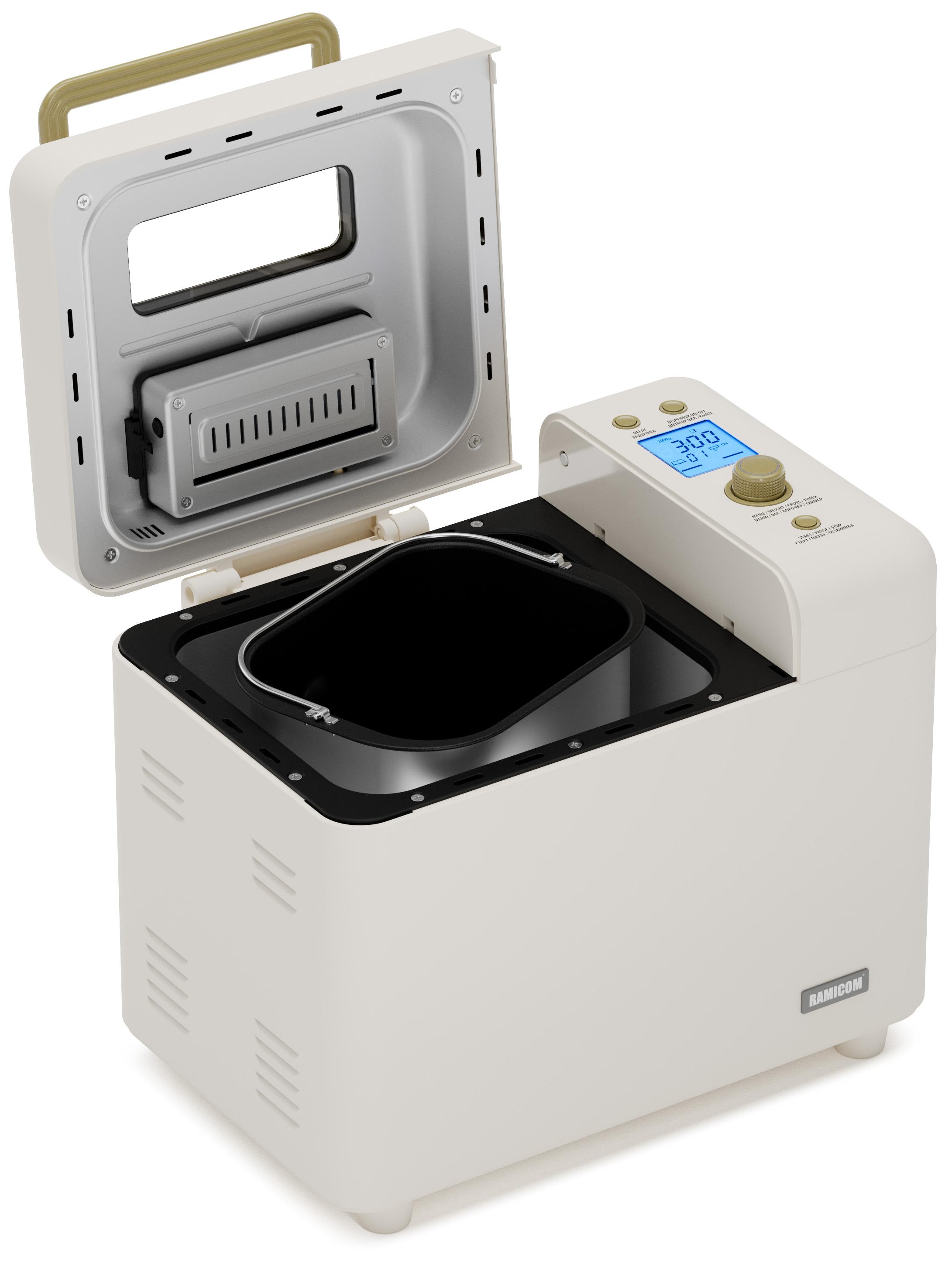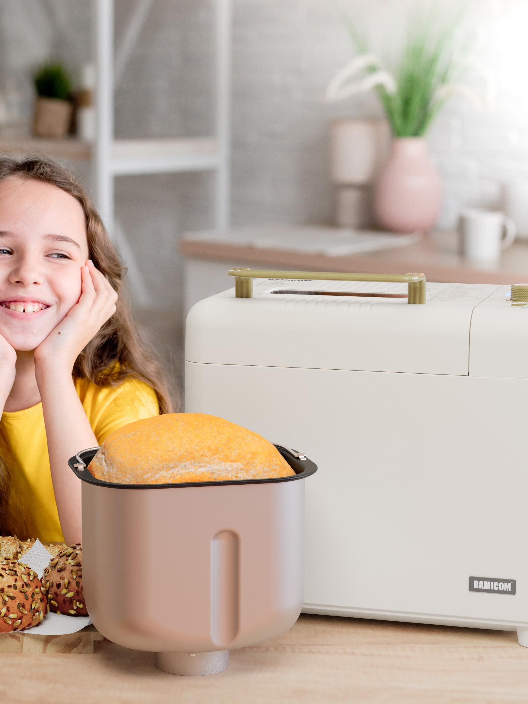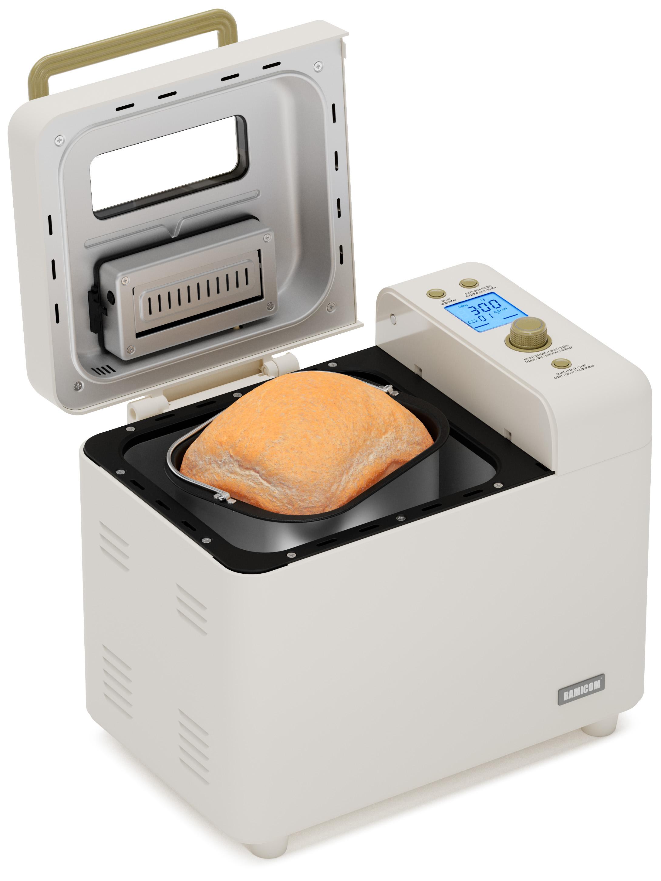 Хлебопечка Ramicom Premium Style RB8200 — это идеальное решение для тех, кто любит свежий и домашний хлеб. Благодаря мощному мотору и большой чаше, вы можете приготовить до 1 кг ароматного хлеба. В разнообразных режимах приготовления хлебопечь позволяет выбрать одну из трёх степеней подрумянивания корочки, настроить прочие параметры на свой вкус, а таймер — начать приготовление в нужное время. Заранее подготовлены 29 программ: 21 программа выпечки, 8 программ для подготовки теста. Благодаря большой мощности этой хлебопечки вы сможете приготовить хлеб от 750 граммов до 1 килограмма. Одним из главных преимуществ хлебопечки является ее компактность и удобство использования. Она легко помещается на кухне и не занимает много места. Кроме того, устройство имеет стильный дизайн, который отлично впишется в любой интерьер. Домашняя хлебопечь Ramicom Premium Style RB8200 также обладает высокой производительностью и скоростью приготовления хлеба. Она может выпекать хлеб быстро и качественно, что позволяет экономить время и силы. Кроме того, она оснащена функцией автоматического поддержания температуры, что гарантирует свежесть и качество хлеба. Хлебопечь Ramicom Premium Style RB8200 также легко чистится и имеет компактный размер, что позволяет легко хранить ее на кухне. Хлебопечка Ramicom – это отличное вложение для тех, кто ценит домашний уют и вкусную еду. Ramicom Premium Style RB8200 – это не только хлебопечка. В хлебопечке Ramicom Premium Style RB8200 можно не только приготовить хлеб или джем. В режиме программы номер 16 можно потушить мясо, рыбу, овощи. Например, вы можете без лишних хлопот приготовить курицу с картофелем или рыбу с овощами. В процессе приготовления хлебопечка самостоятельно помешивает еду, а антипригарное покрытие нового поколения позволяет готовить здоровую пищу с минимальным количеством масла или вовсе без него в зависимости от блюда. Оптимально для приготовления 2–3 порций.
